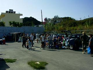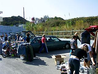 | Die touristenfreie Zeit verschönern sich die Einheimischen und die Zugereisten mit einem regelmäßigen Flohmarkt. Der erste Flohmarkt war heute von 11-14 Uhr auf dem Parkplatz vom Faliraki-Rose Hotel. | ![]() |